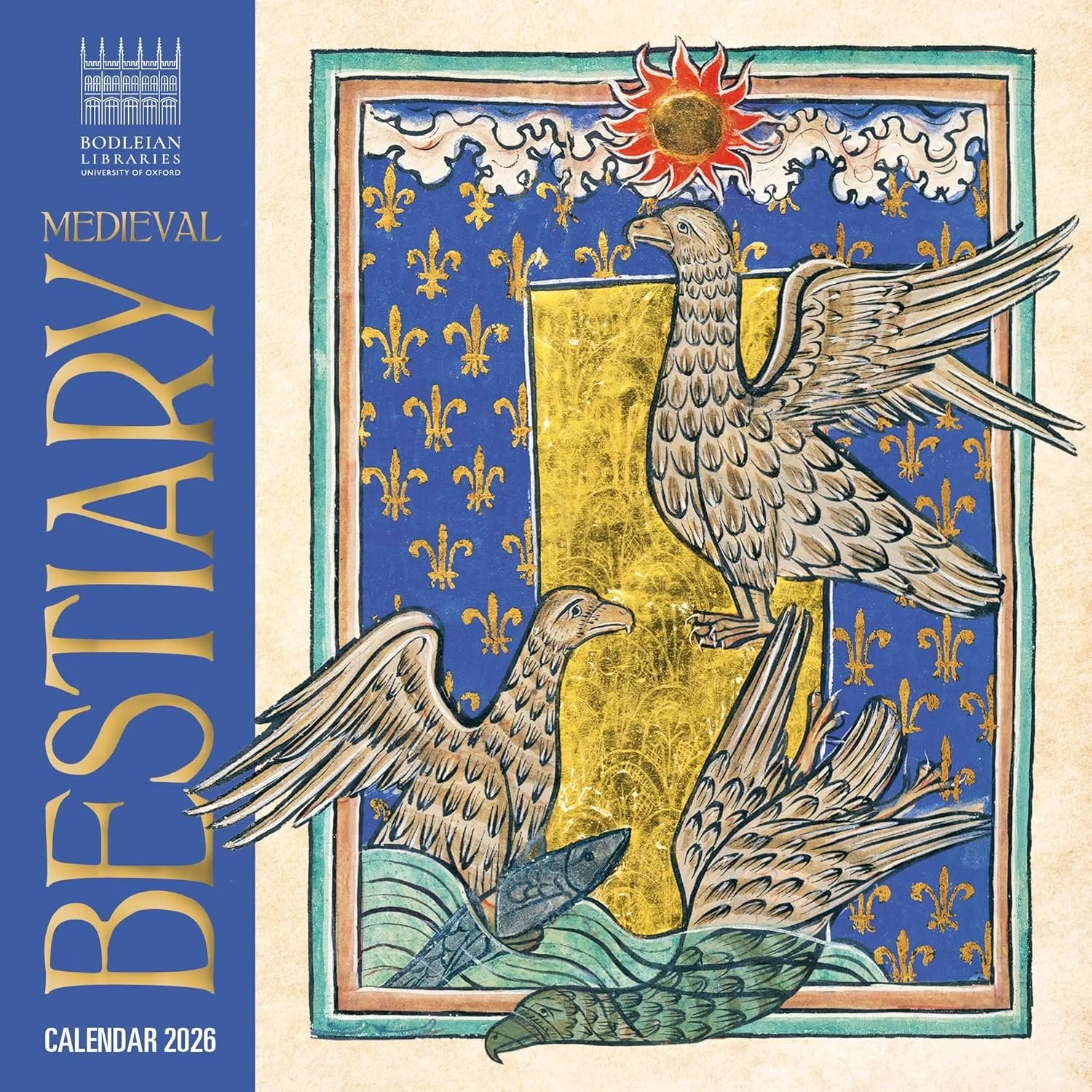 Twelve iconic animals, real and imagined, from the medieval Bodley Bestiary manuscript. A new mini wall calendar from Bodleian Libraries and Flame Tree.